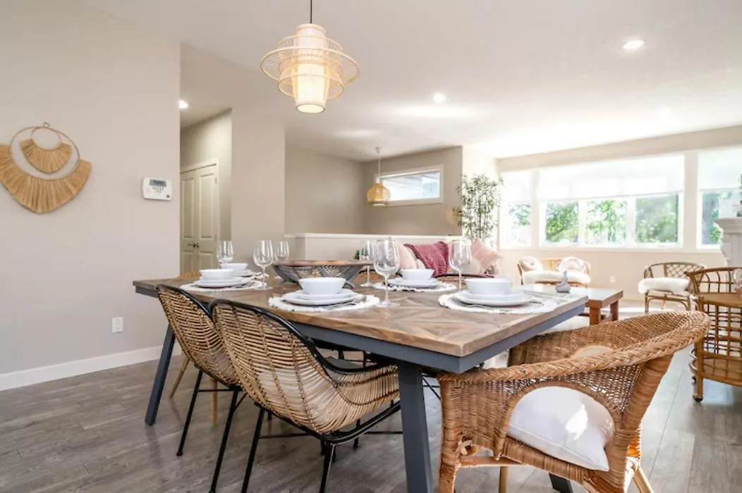 O apartamento está equipado com comodidades de auto-atendimento, incluindo cozinha equipada e uma área de refeições ao ar livre e zona de refeições para os hóspedes desfrutarem. O Boho House-Sleeps 17-Garage-3 Kitchens-Fireplace está localizado a cerca de 10 minutos de carro do aeroporto Edmonton, Alberta. Os hóspedes ativos no Boho House-Sleeps 17-Garage-3 Kitchens-Fireplace podem desfrutar da conveniência de campo de golfe.